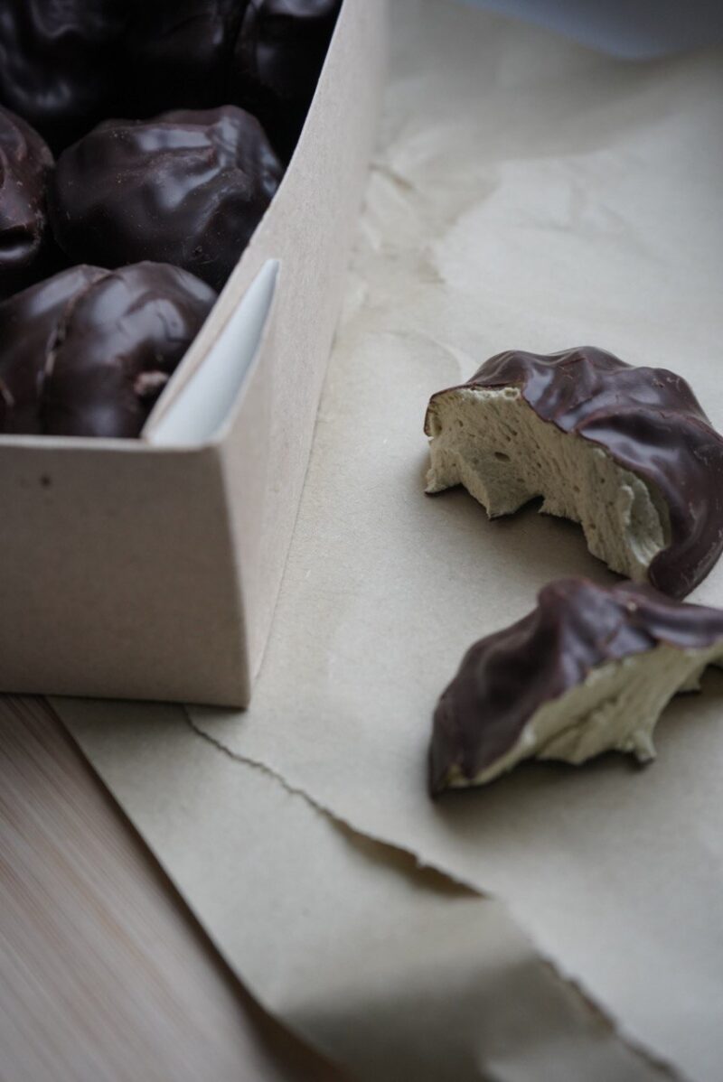 Зефир, который не оставит Вас равнодушным! Нотки фисташкового ореха в воздушном зефире, который покрыт темным шоколадом.