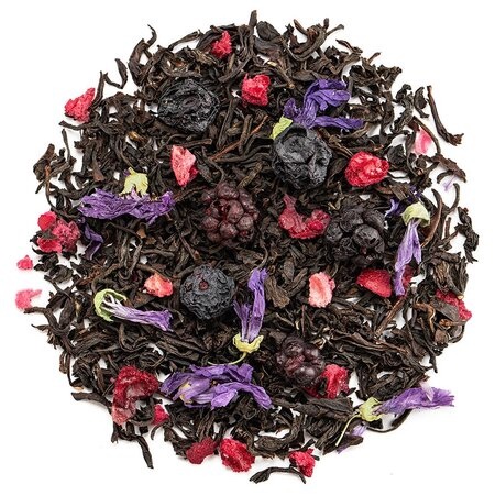 Состав: чай чёрный индийский, ежевика ягоды, голубика ягоды, мальва цветы, клюква кусочки